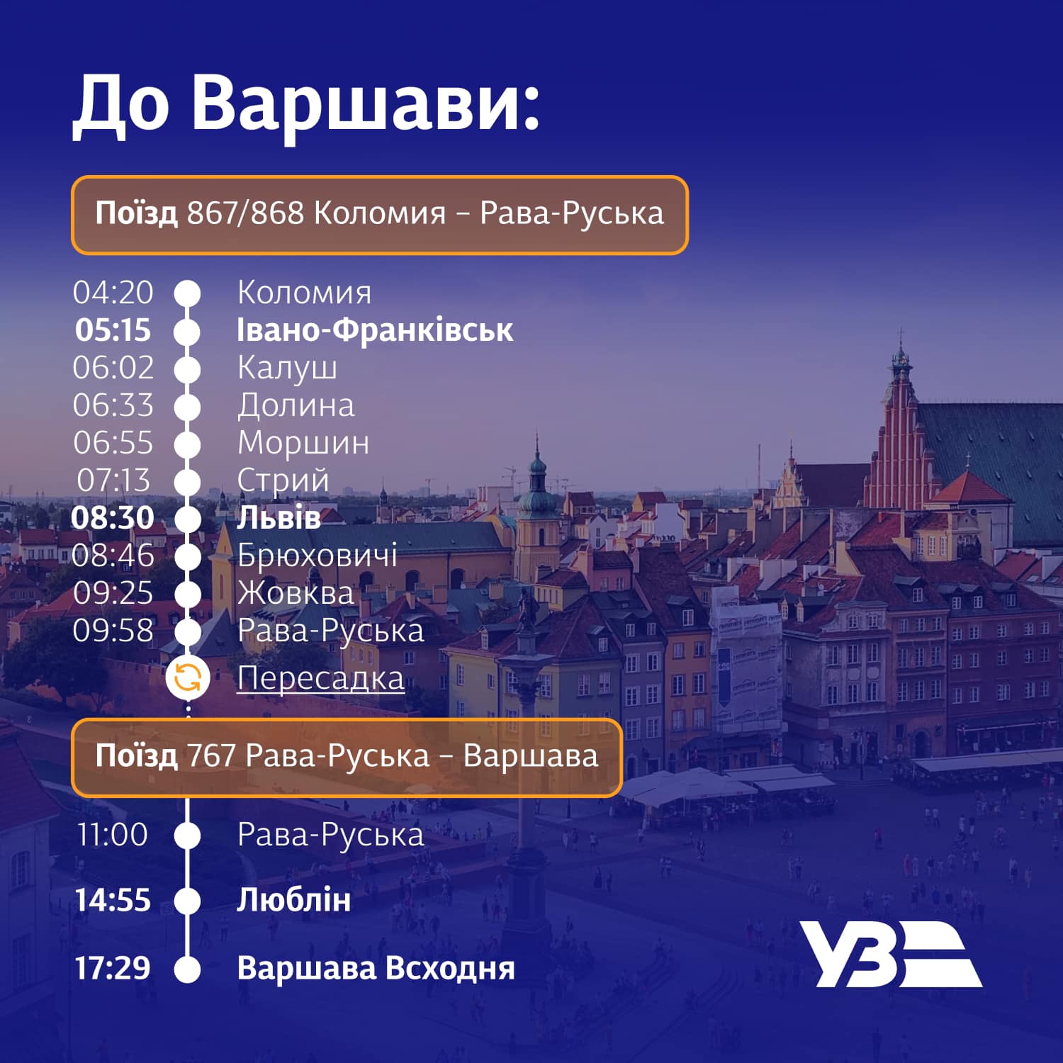 Також пасажирам не варто хвилюватися за можливі запізнення, оскільки пересадка узгоджена. Поїзд завжди чекатиме усіх пасажирів!