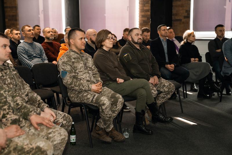 На зустріч зібралися військові прикарпатських підрозділів, партнери, волонтери та представники командування сил Тероборони ЗСУ – Оксана Сироїд та Антон Рубан.
