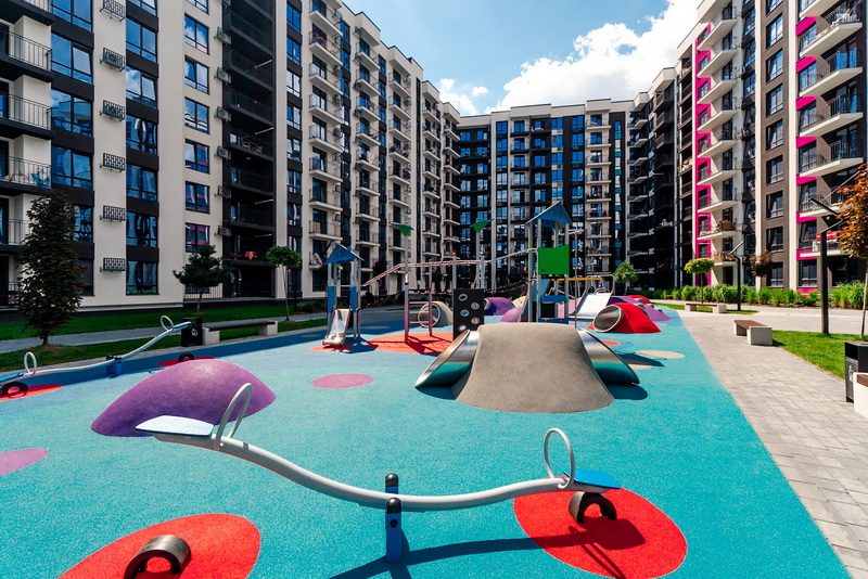 Житло преміумкласу з басейном на даху будинку, дизайнерськими холами, дворівневим підземним паркінгом. На території ЖК – приватні дитячий садок та школа.