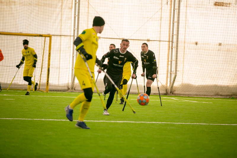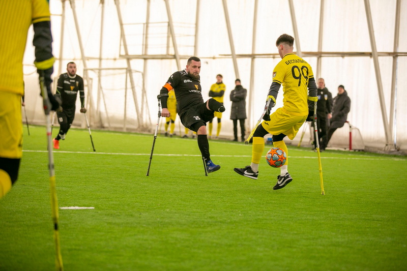 Ампфутбол — це адаптований вид футболу для людей з ампутаціями кінцівок, де гравці використовують милиці для пересування по полю (а воротарі можуть мати ампутацію руки).