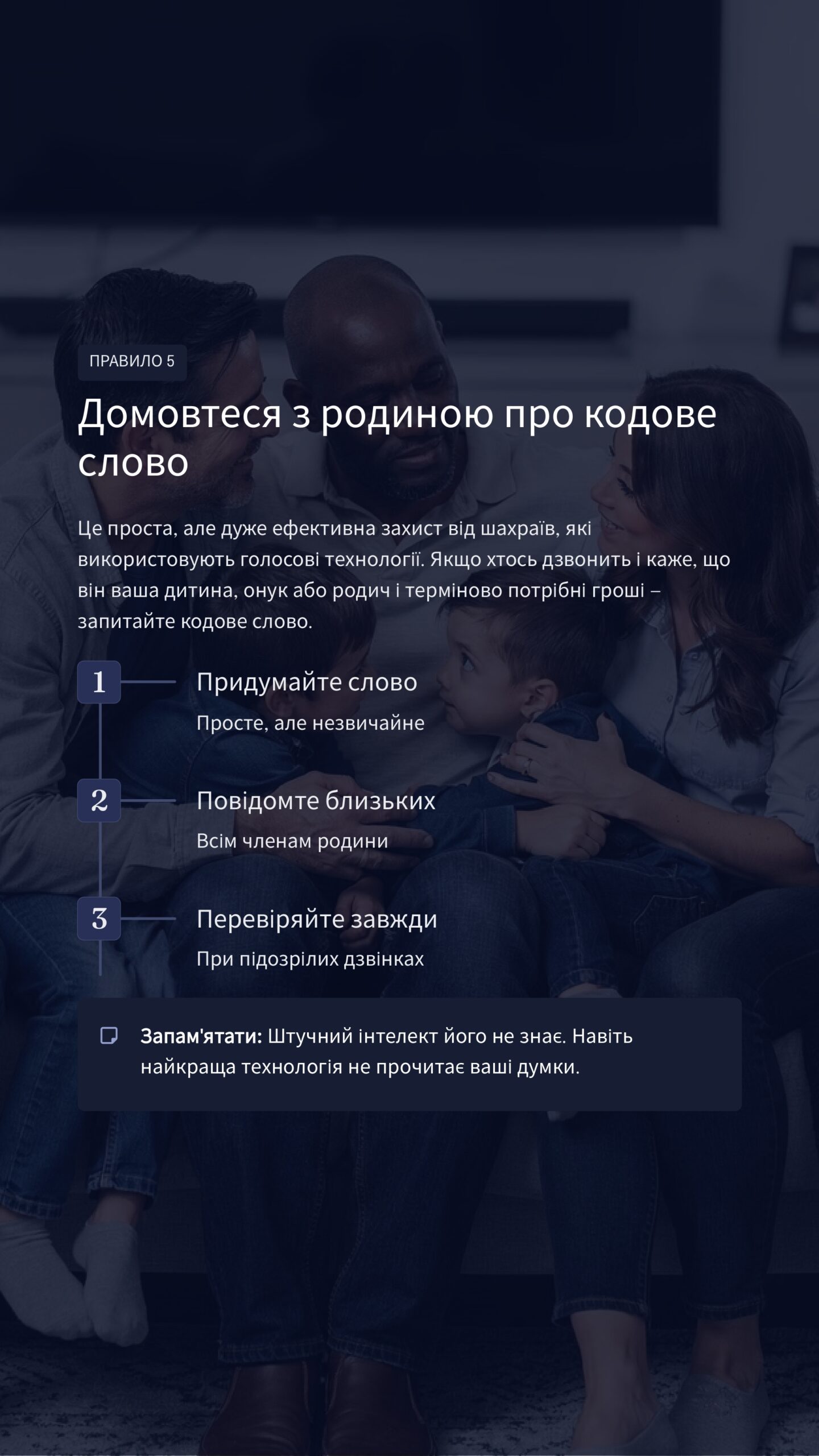 Тому, що я розумію, голос мого внука, моєї дочки, будь-кого можна підмінити. І на це треба буде раптом 30 секунд, – каже вона. – Я розумію, що найосновніша зброя шахраїв – це моральний тиск. А ми ж із віком стаємо трошечки більш меланхолійні, більше боїмося. І тому це на нас діє більше.