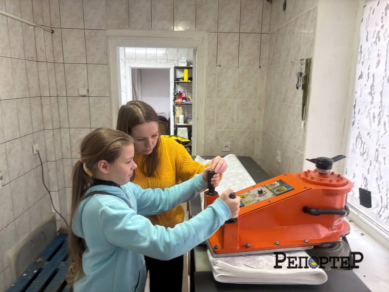 Перші швейні машинки ми завезли ще у березні. Але коли сюди зайшли з Наталею Філіппською (керівницею майстерні-коворкінгу «Клаптик» – авт.), одразу подумали, що тут було б дуже гарно поставити прес. Так і народилася ця ідея, – говорить Оксана Моспанюк. – Тоді ми організувалися з дівчатами, які роблять сітки-витинанки, – Тетяною Фреїшин і Наталією Сташко. Оголосили збір і зібрали на цього красунчика.