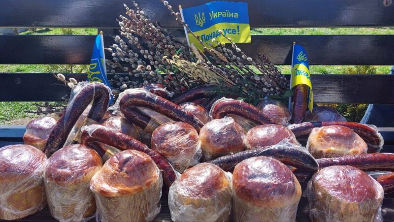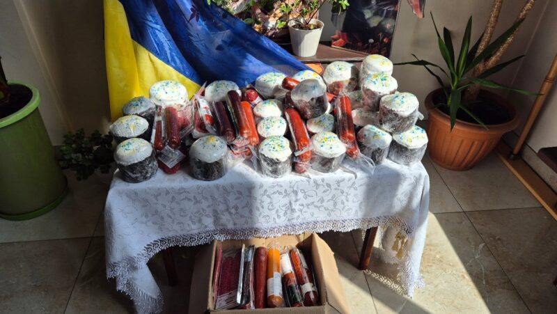 Готові паски Олександра разом з іншими членкинями ГО «Дружина воїна» освячують на Вербну неділю. Опісля разом з традиційними великодніми продуктами їх відправляють на фронт.