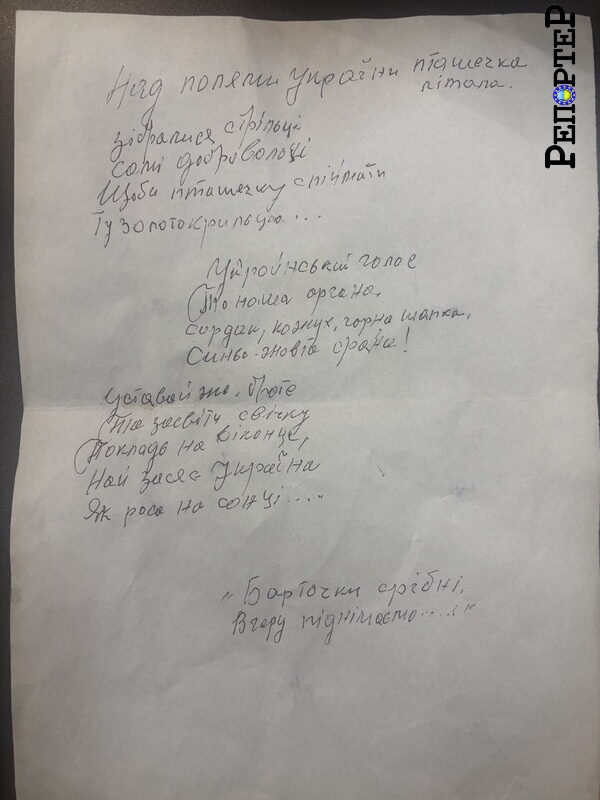 Сам бере аркуш паперу з гарним почерком і декламує: