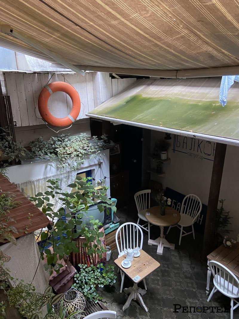 Сам двір прикрашений вазонами та іншими «затишними» деталями. Є навіть старі ваги для продуктів – ніби на одеському Привозі.