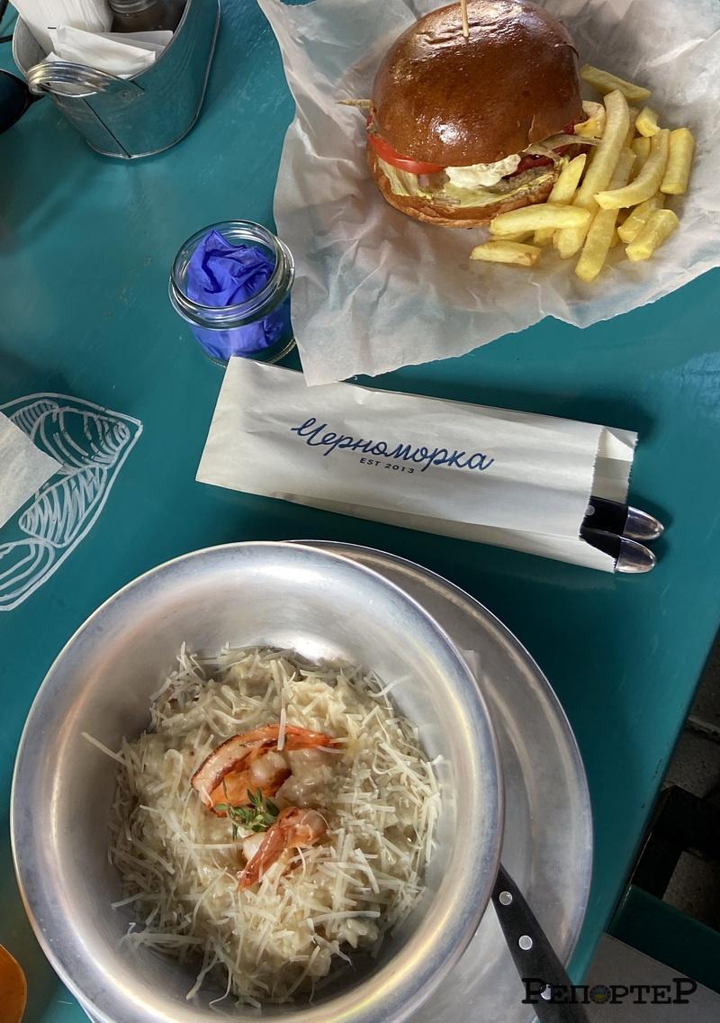 У «Чорноморці» вам видадуть великий список риби, де буде позначено опції, які готують сьогодні. Вибраний варіант засмажать на грилі, у пательні або в соусах. Крім риби, є ще мідії та устриці. Усі наявні на сьогодні морепродукти також можна купити сирими та приготувати вдома.