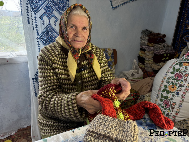 Жінка у свої 95 років в’яже теплі шкарпетки для військових, пише Репортер.