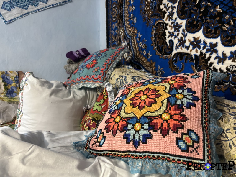 У пані Софії дуже охайно на подвір’ї і в хаті. Дві кімнати невеличкого будинку прикрашені її роботами – вишиваними шторами, подушками, серветками, покривалами, картинами.