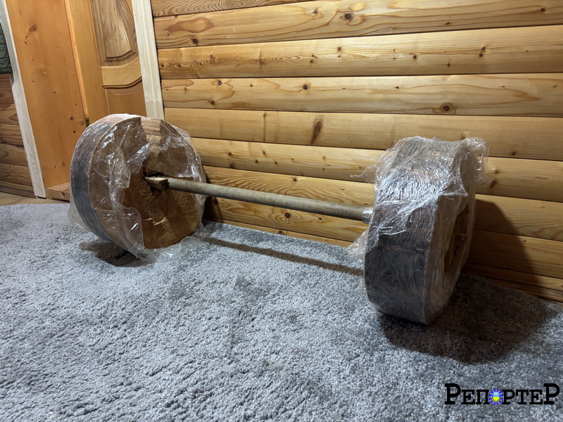 З-під ліжка пані Оксана дістає рюкзак з великою банкою на 6,5 л. Микола одягав це на плечі й відтискався 50-60 разів.