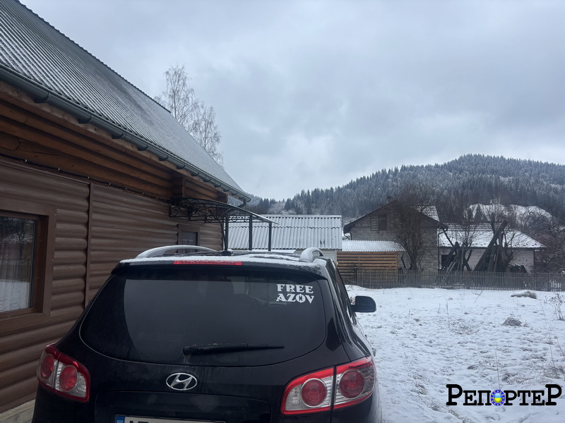 Пані Оксана вбрана у футболку з азовською символікою. На їхній автівці під хатою наліпка «Azov Free». У хаті, біля ікони – ще один прапор «Азову», з підписами бійців і мам загиблих.