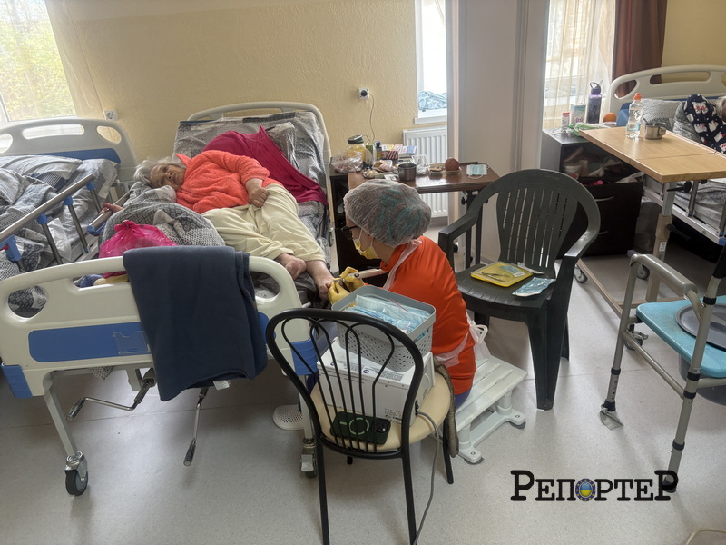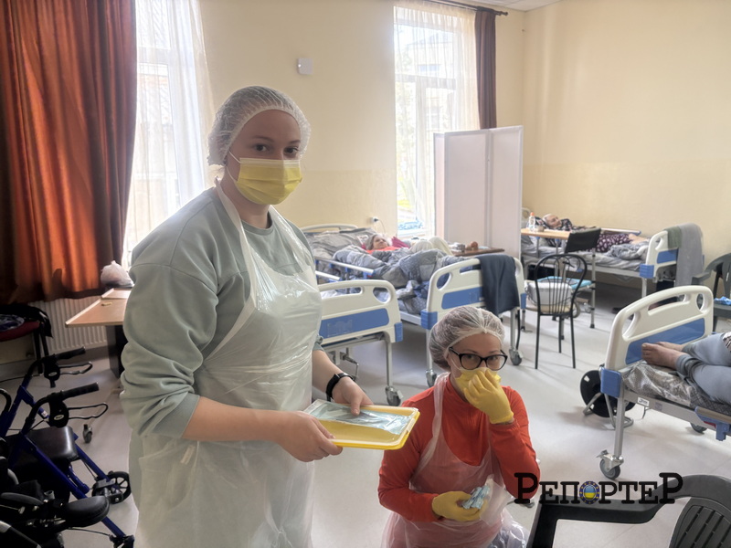 Приїхали ось Олічка, Люба, мій сусід – він позавчора помер. Тут ми як вдома, але все одно не вдома, – каде Поліна Гребенюк. – Тут дуже добрий персонал, вони нам як няньки. Бо є багато таких, хто не ходить. Приходять волонтери, були художники з краєзнавчого музею, ми малювали картини. Також приходить священник, проводить службу.