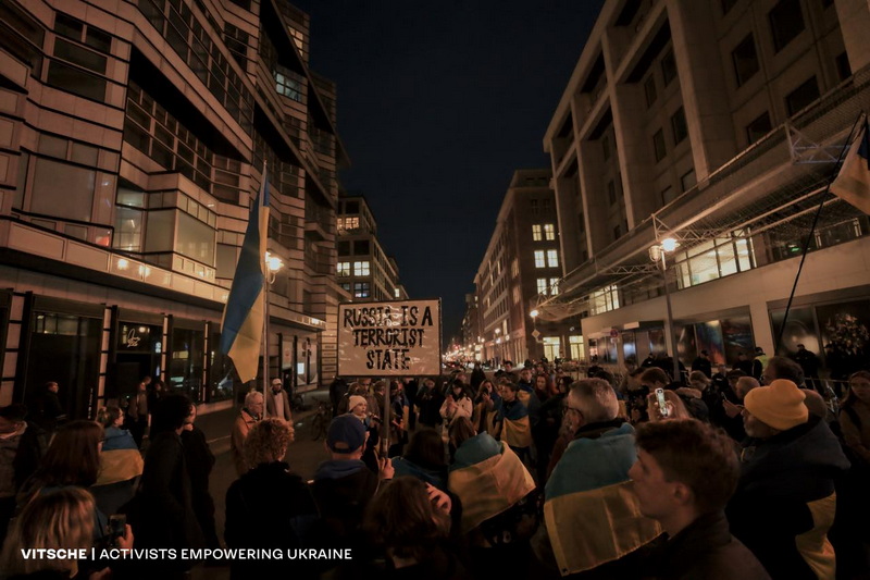 У мене до сьогодні є цей скріншот на телефоні. Ця новина абсолютно перевернула все, я розуміла, що це не жарти, – розповідає Ірина Шулікіна. – Перша демонстрація була не дуже масштабною – десь до 200 людей. Ну другу, коли ситуація почала нагнітатися, прийшло кілька сотень. Ми пройшли маршем від Бранденбурзьких воріт до російського посольства – протестували там. І ми бачили, що Німеччина зреагувала, до нас що доєднувалися іноземці.