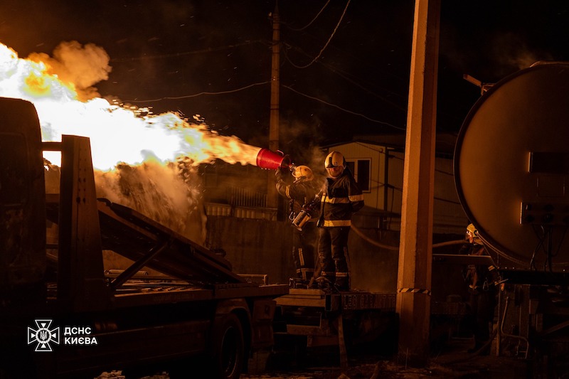 У Дарницькому районі атака спричинила руйнування та займання незаселеної житлової багатоповерхівки. Пожежу ліквідували. У Солом’янському районі пошкоджена офісна будівля.