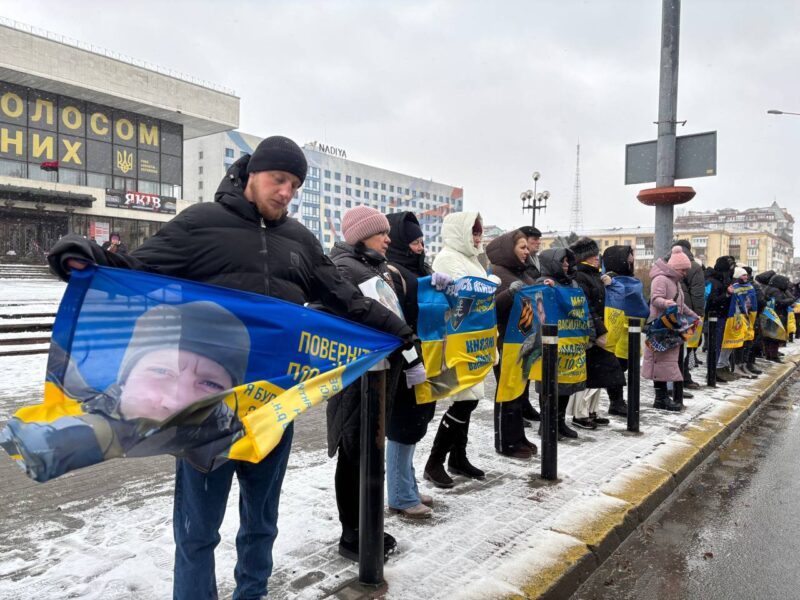 У неділю, 28 грудня, перед Франківським драмтеатром відбулася акція на підтримку військовополонених і безвісти зниклих захисників. У ній взяли участь рідні військових, звільнені з полону бійці, небайдужі франківці й гості міста.