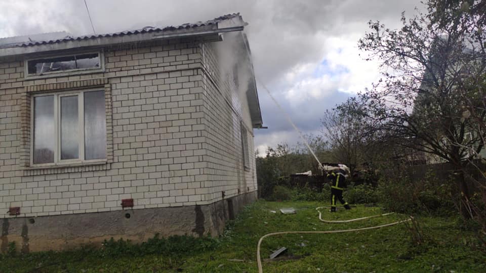 О 13.19 пожежу локалізували, та зняли з горища газові балони, а о 13.38 – погасили.