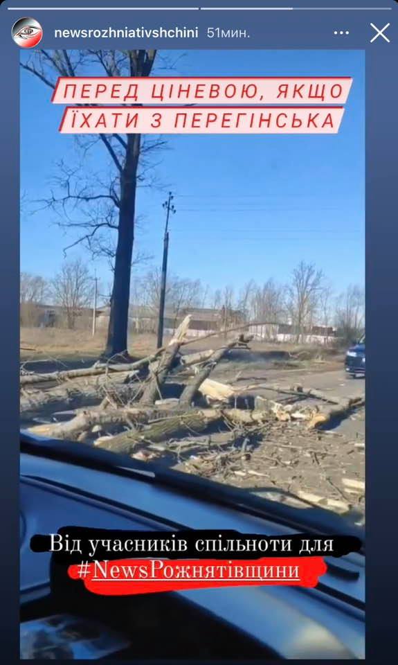 Так, 29 грудня о 12:59 в селі Цінева Рожнятівського району дерево впало на проїжджу частину дороги. О 13.13 в селі Дзвиняч Богородчанського району дерево впало на покрівлю магазину. О 13:15 в місті Надвірна на вулиці дерево впало на житловий будинок. О 13:25 в місті Надвірна на вулиці Шевченка дерево впало на проїжджу частину дороги. А у Перегінську дерево розтрощило автівку.