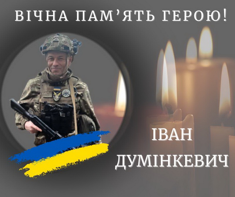 Зі скорботою повідомляємо про загибель на війні нашого Захисника — солдата Думінкевича Івана Степановича, 1983 року народження. Іван Думінкевич гідно та віддано служив у гранатометному відділенні роти вогневої підтримки 5 батальйону територіальної оборони, – йдеться у повідомленні.