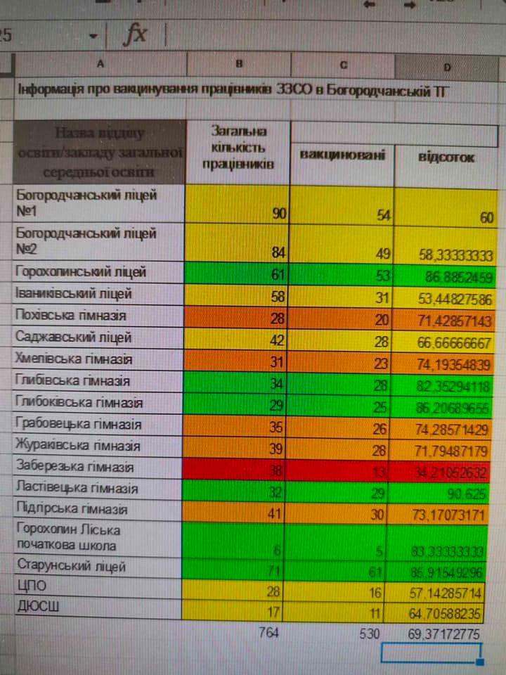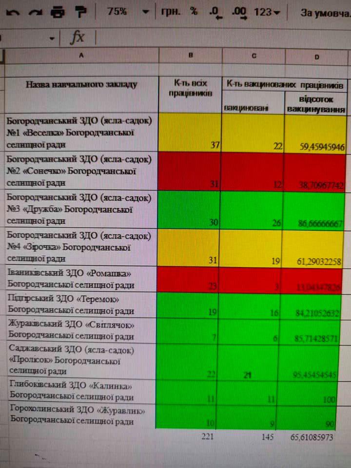 У Богородчанській громаді лише у 12 закладах освіти вакцинувалися понад 80% працівників.