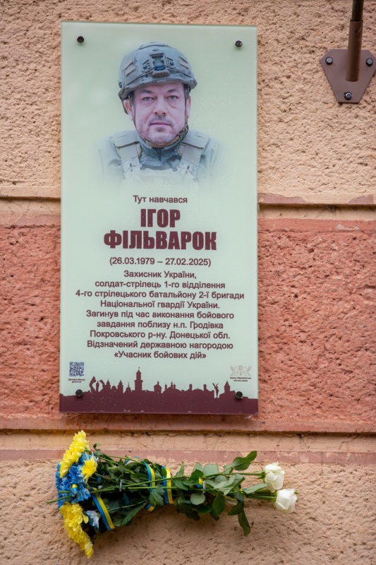 У середу, 8 жовтня, у Франківську на фасаді ліцею №13 відкрили анотаційні дошки його випускникам, полеглим захисникам Руслану Ганущаку й Ігорю Фільварку.