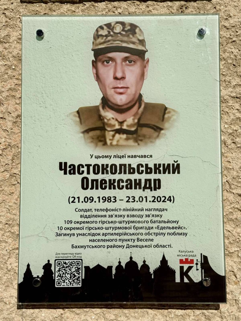 У середу, 22 жовтня, на фасаді Калуського ліцею №3 відкрили і освятили інтерактивні меморіальні дошки у пам’ять про бійців Олександра Частокольського та Віктора Семанишина.