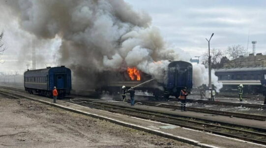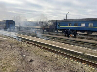 Вранці 4 березня у Миколаєві дрон влучив у пасажирський потяг під час масованої атаки безпілотників «Шахед». Внаслідок удару пошкоджено залізничну інфраструктуру та поранено одну людину.