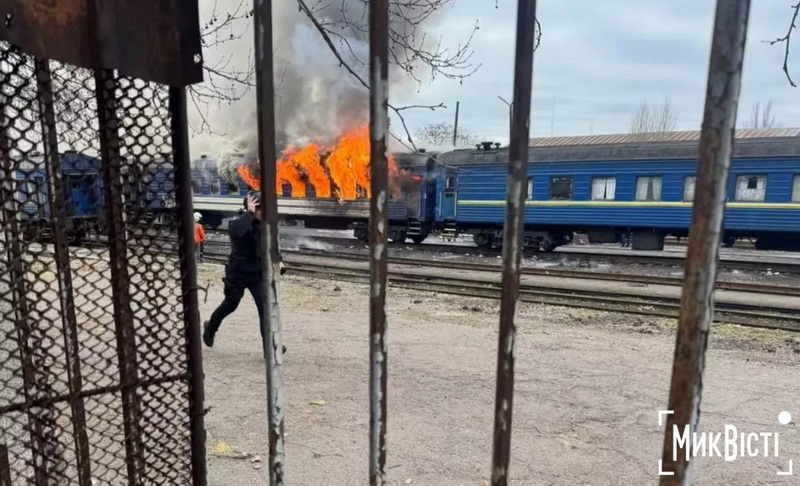 Місцеві видання зафіксували, що вогонь охопив пасажирський вагон, який стояв на пероні. Віталій Кім розкритикував Telegram-канали за публікацію відео з наслідками атаки в реальному часі, назвавши це допомогою ворогу, та пообіцяв відповідну реакцію правоохоронців.